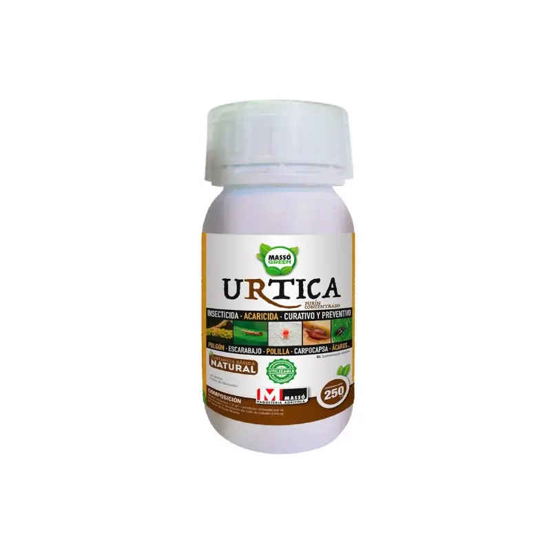 MASSOGREEN URTICA es un purín natural elaborado a partir de extracto de Urtica, autorizado para el control de insectos y ácaros en gran variedad de cultivos.